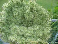 The carrot stalk ended up about 1.8m tall with approx 6 flower heads of varying sizes. Over time the heads folded up and the seeds started browning up. I cut the first and biggest flower off before the aphids got it and they are now drying in a paper bag (another future post because I’ve used the same technique with coriander). Here’s a close up the flower, unfortunately the camera was on a trip with my wife when they went brown and aphid infested so I no photo’s of that sorry.